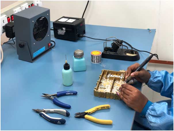 Aidin holds a State of the Art Class 10000 clean room that is equipped with production equipment including conformal coating. Our facility is audited and certified by ISRO for onboard fabrication and assembly. Our team includes ISRO Certified Technicians and QC inspectors to perform card assembly.